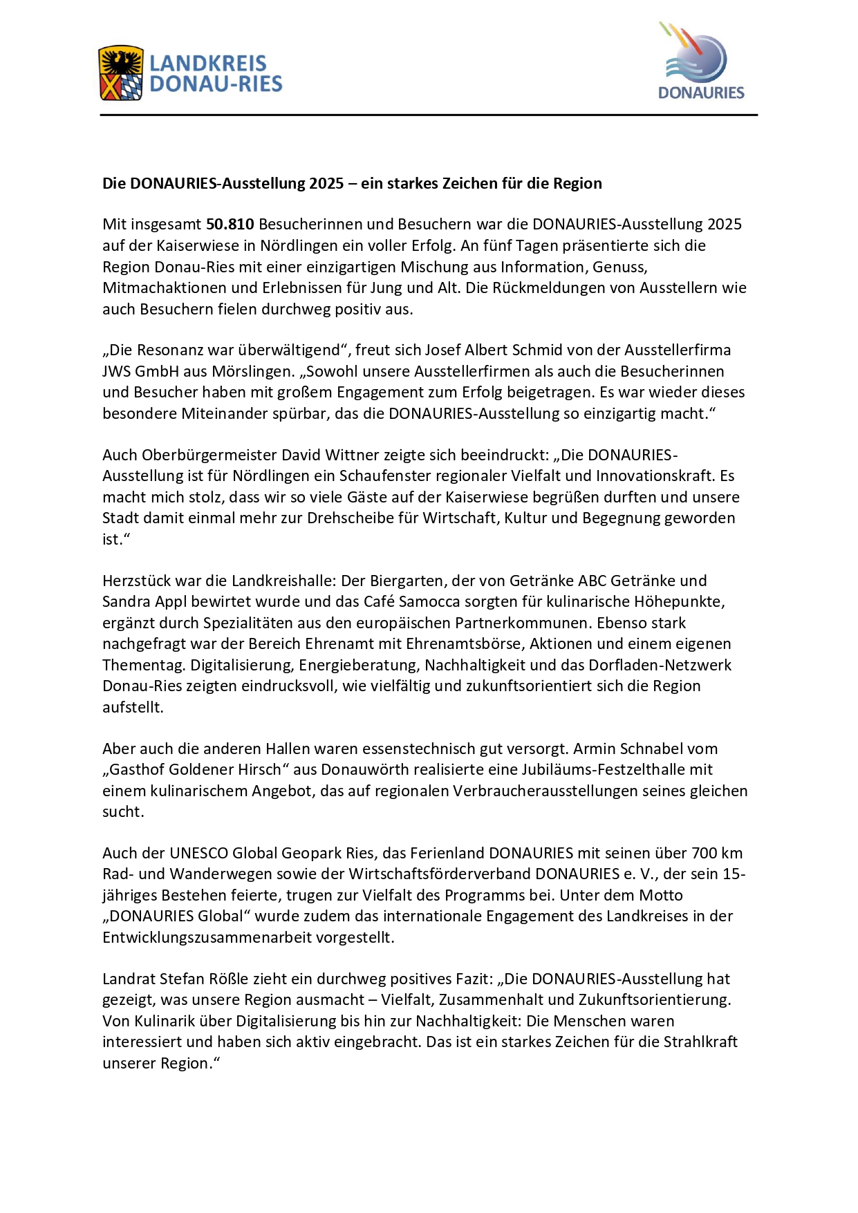 So wird die DONAURIES-Ausstellung 2025 erneut zum Treffpunkt für Freunde und Familie – ein Ort, an dem sich Wirtschaftskraft, Genuss, Tradition, Innovation und Lebensfreude vereinen. Ein wahrer Glückstreffer für alle, die entdecken, erleben und genießen wollen.